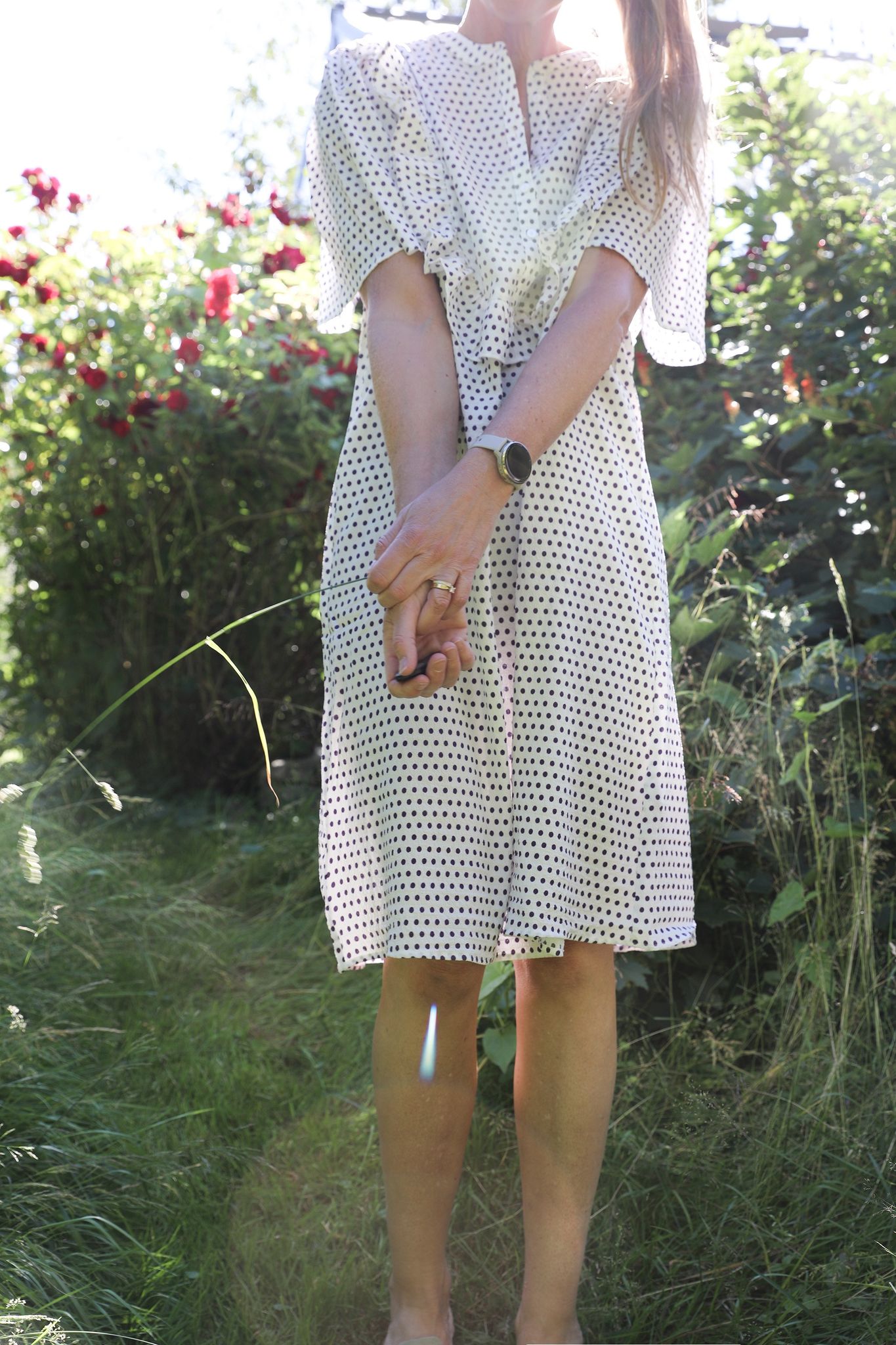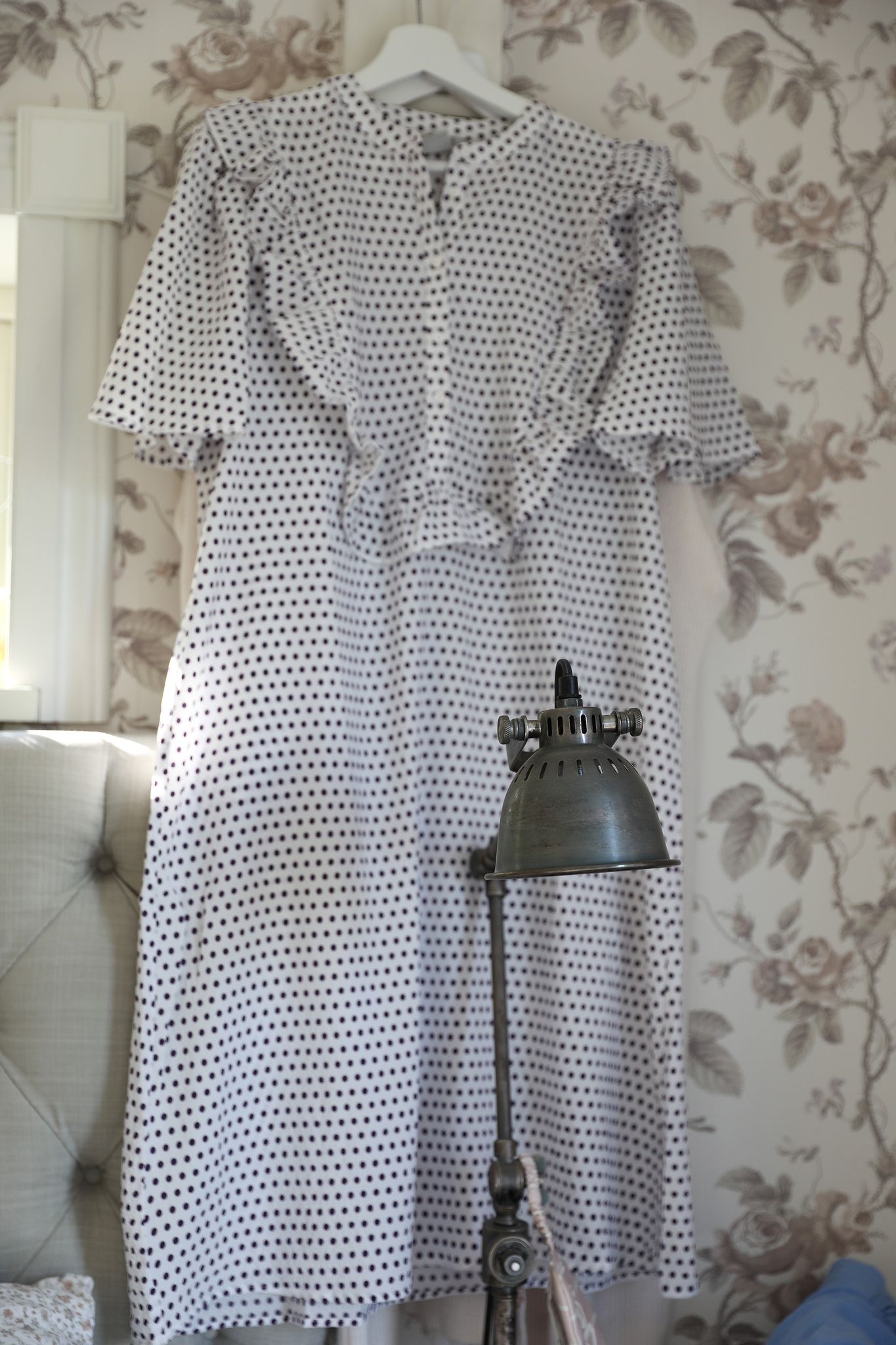 Lantlig sommarklänning med prickar. Söt gammaldags modell som är bekväm och lättburen och får en att känna sig som en sval sommardröm.