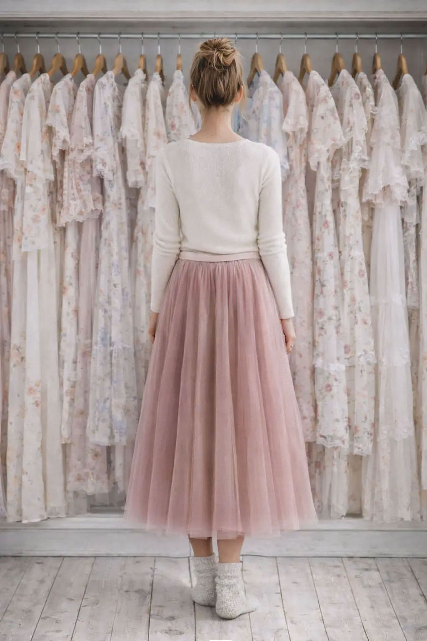 En romantisk ballerinakjol i gammelrosa tyll med mjuk och feminin känsla.
