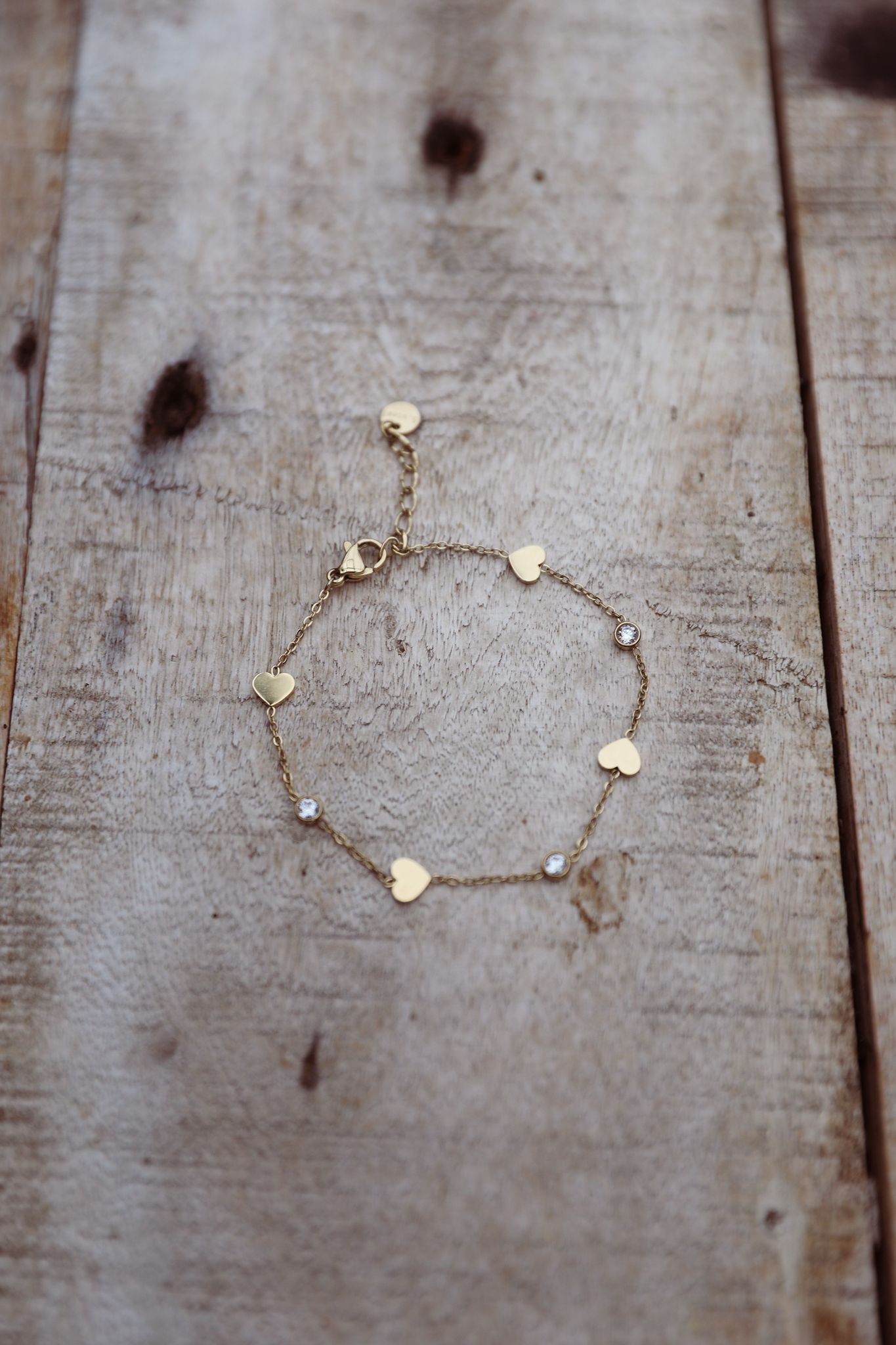 Ljuvligt armband med strass och hjärtan. Guldfärgat i rostfritt stål. Jättefin julklapp eller adventspresent. Material: Rostfritt stål. Inte vårt eget varumärke.