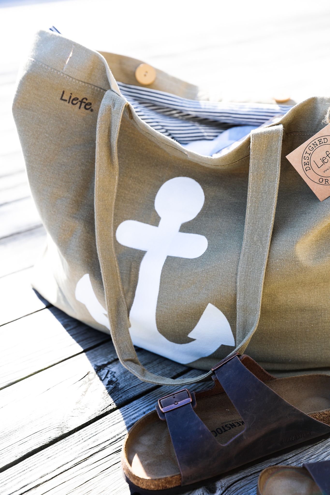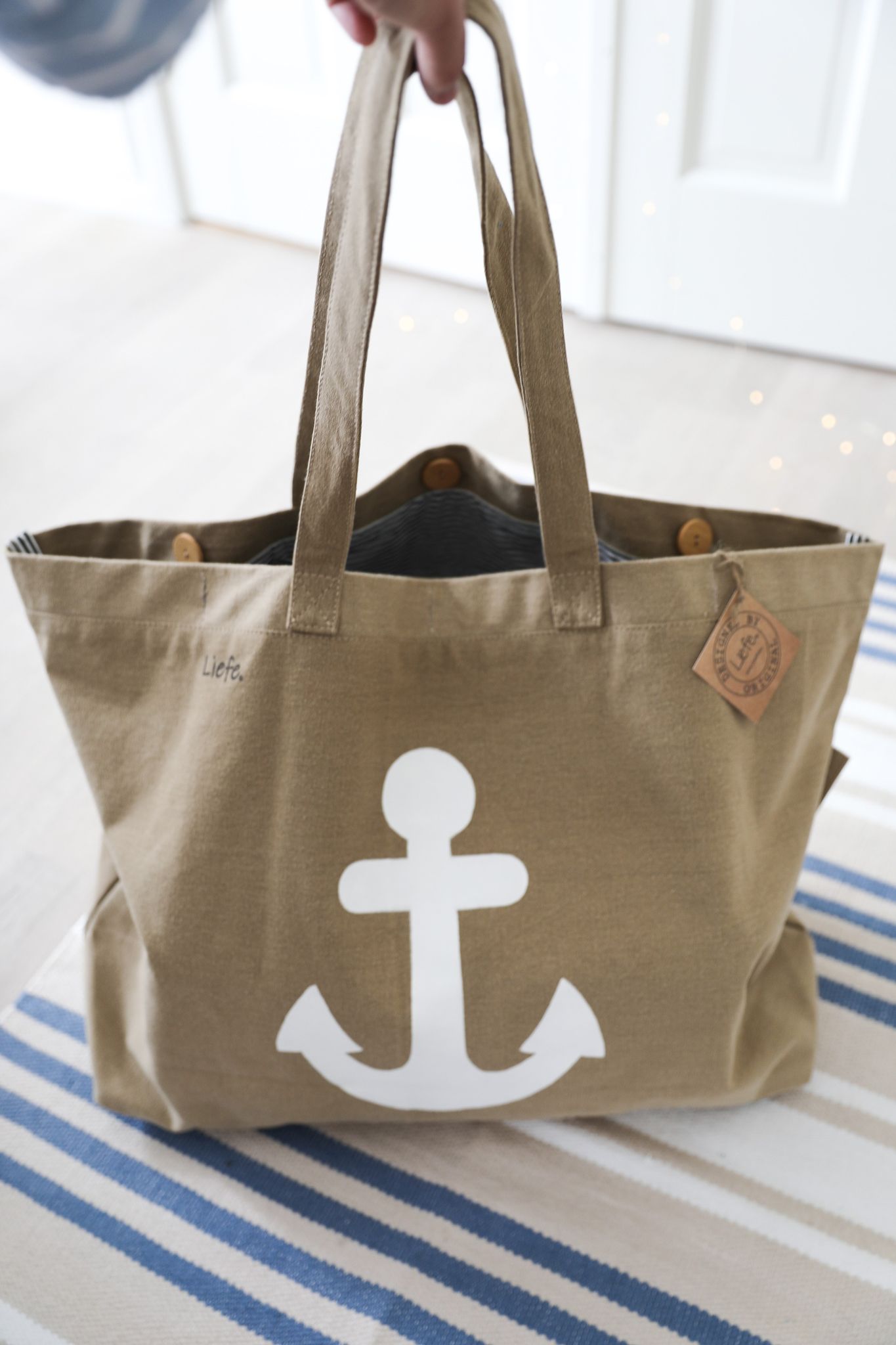 Stor tygväska med ankare.
