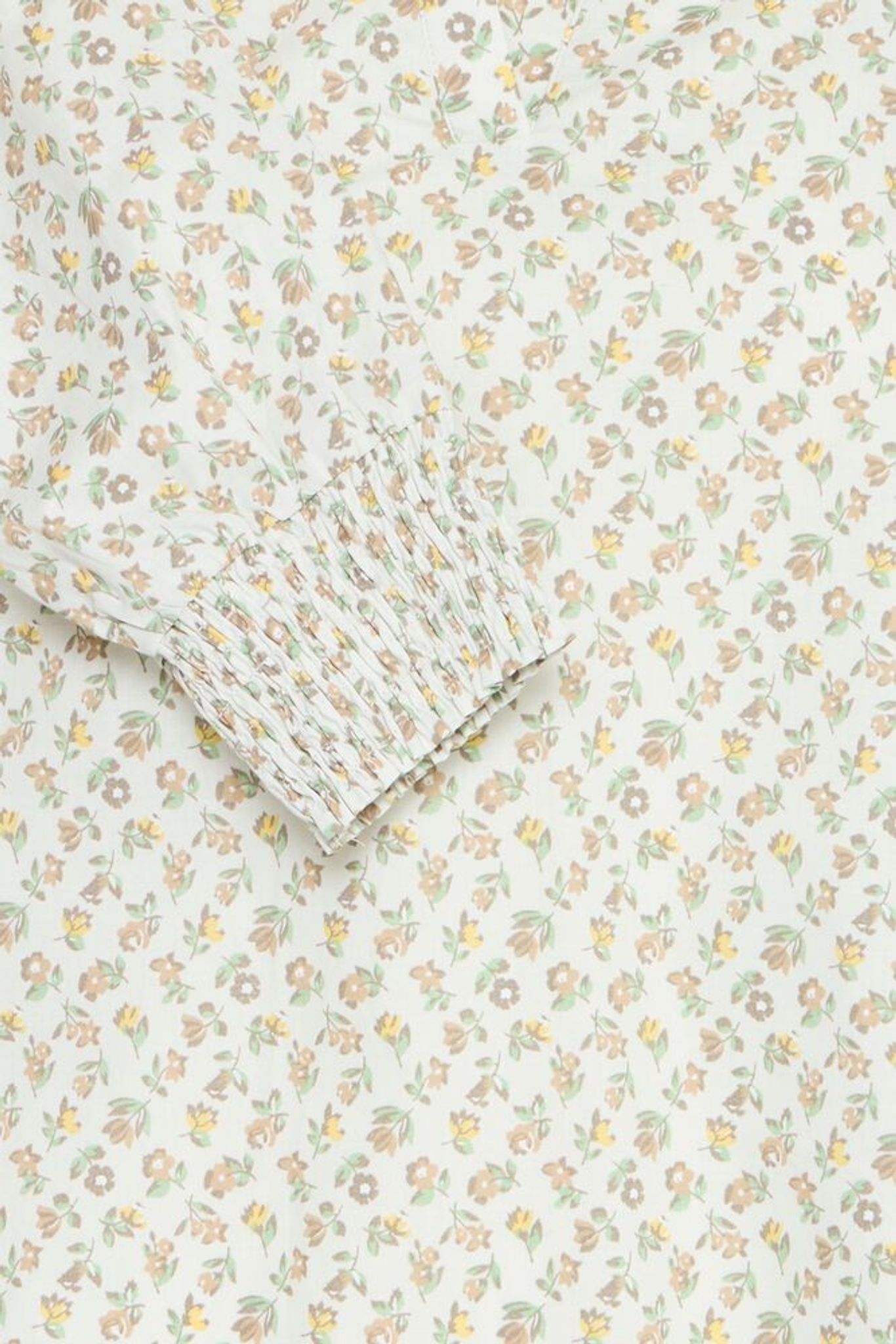 Färg: offwhite med blomprint i gröna bruna och gula nyanser
