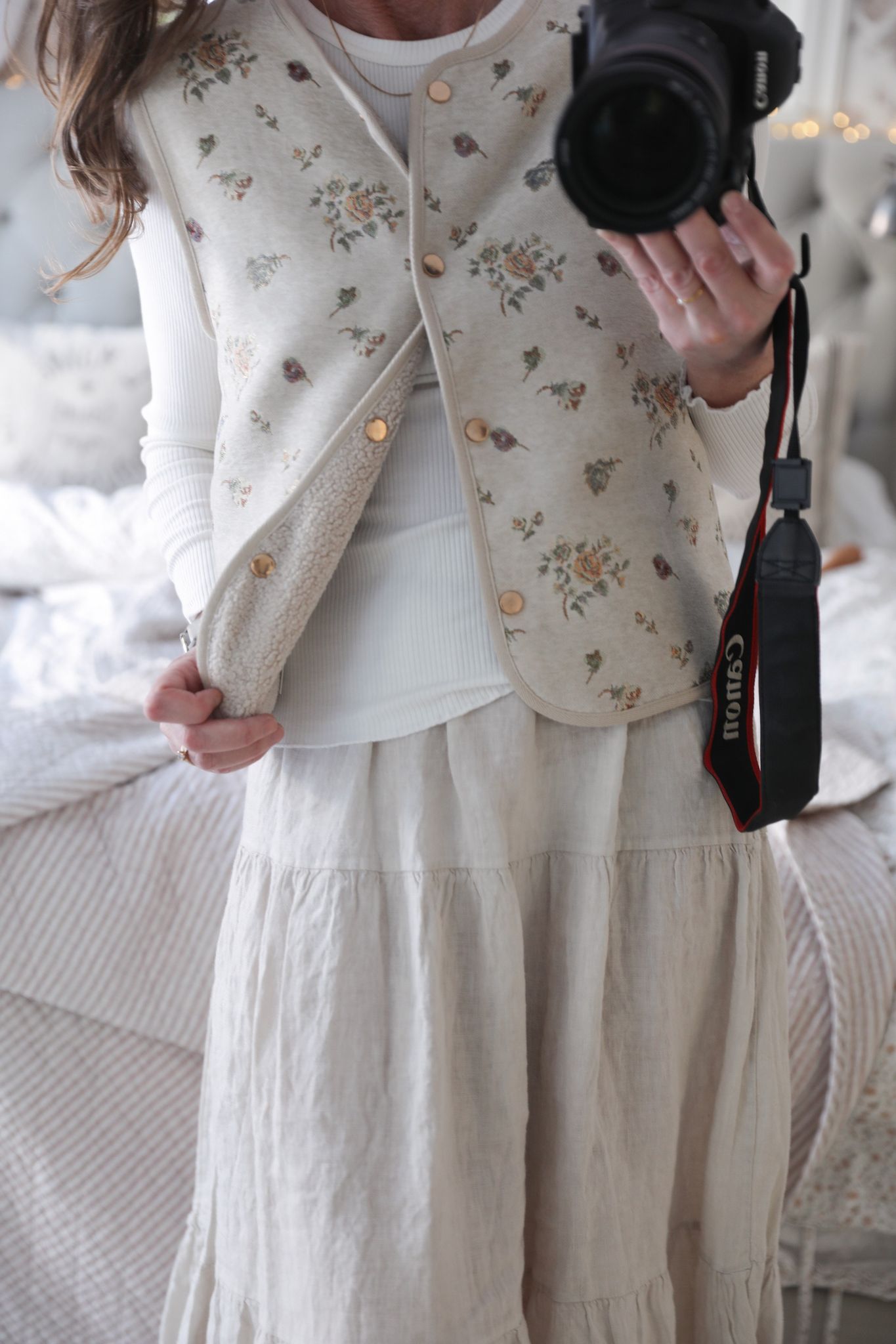 Tambourine väst kommer från Atelier R’eve, ett varumärke med känsla för romantiska detaljer och mjuka materialval.