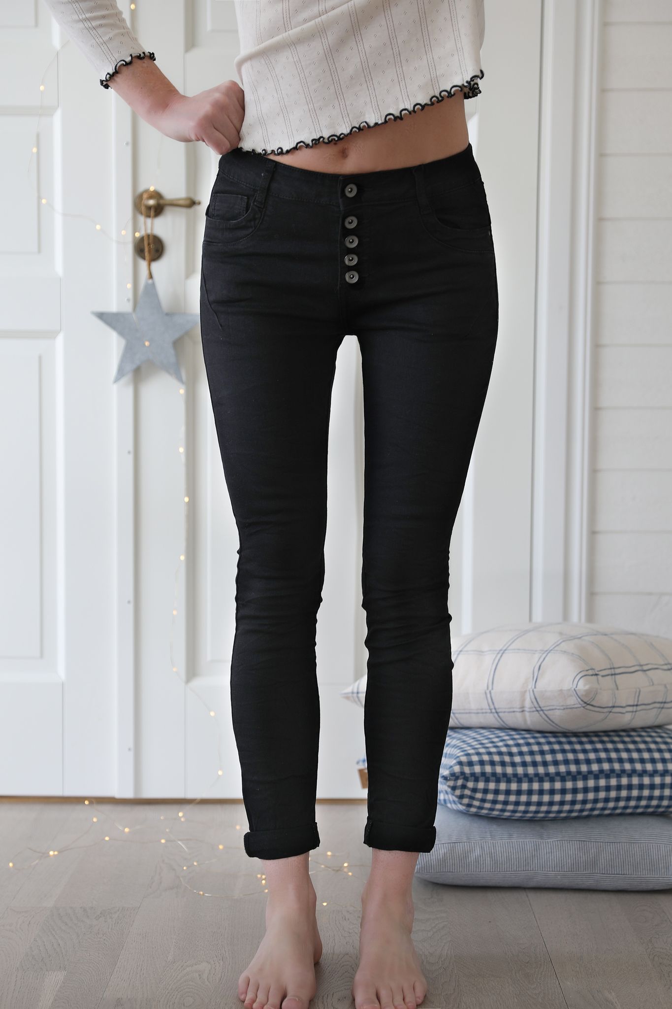 Jeans i favoritmodell svart med mjuk stretch och knappar i gylfen
