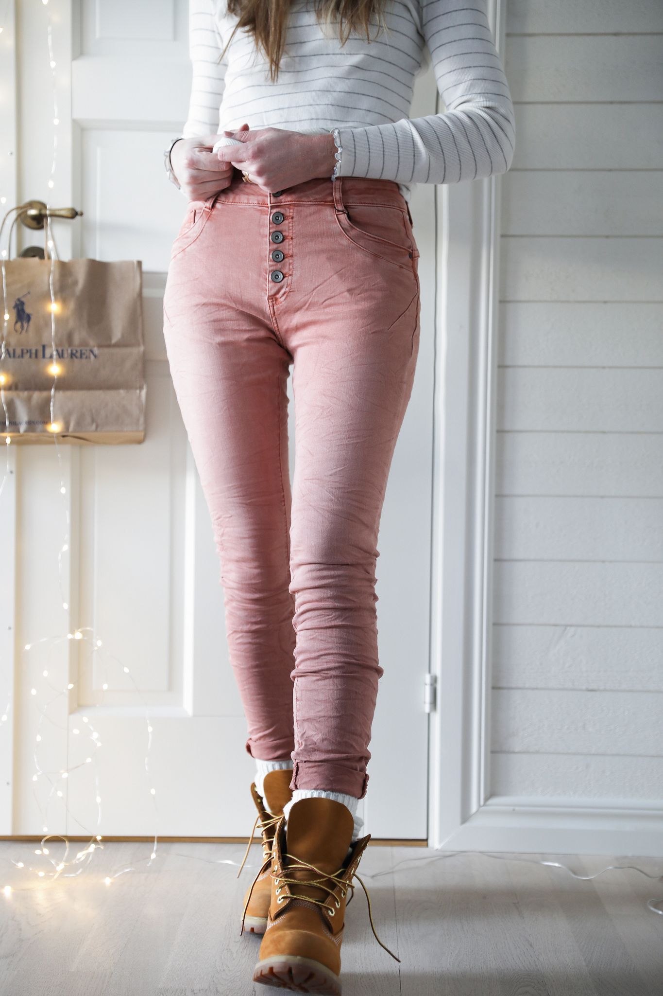 Jeans i favoritmodell vintage rosa med knappar