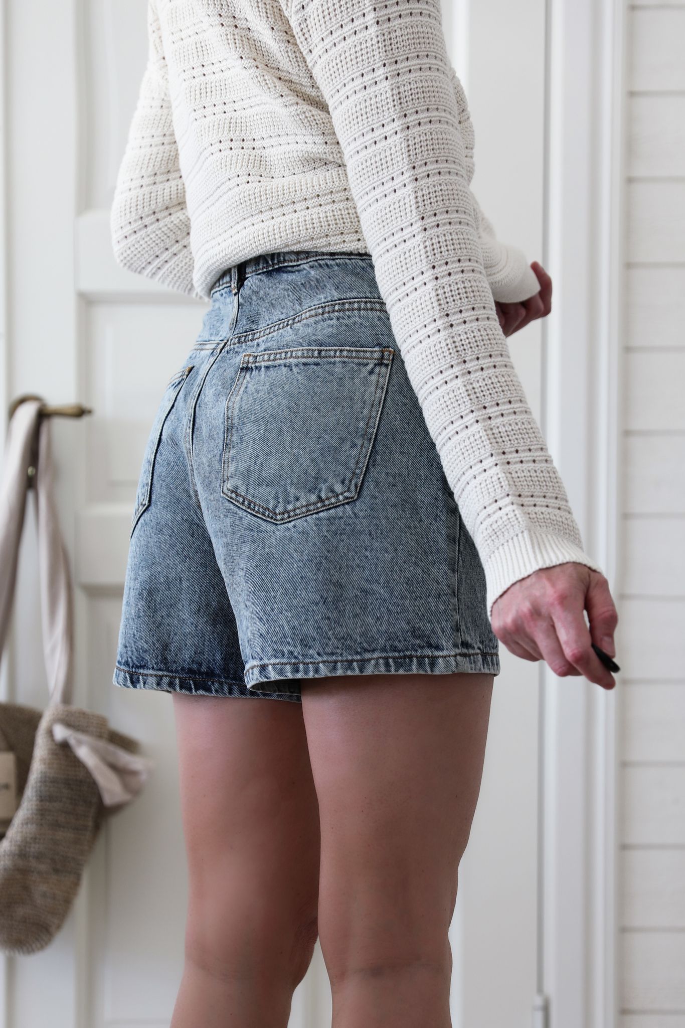 Shorts i en lite kraftigare denim med tydlig struktur och en levande, lätt spräcklig tvätt. Den höga midjan och de något vidare benen ger en fin balans som känns både avslappnad och genomtänkt. Färgen är mellanblå med mjuka skiftningar som gör varje par lite levande i ytan.