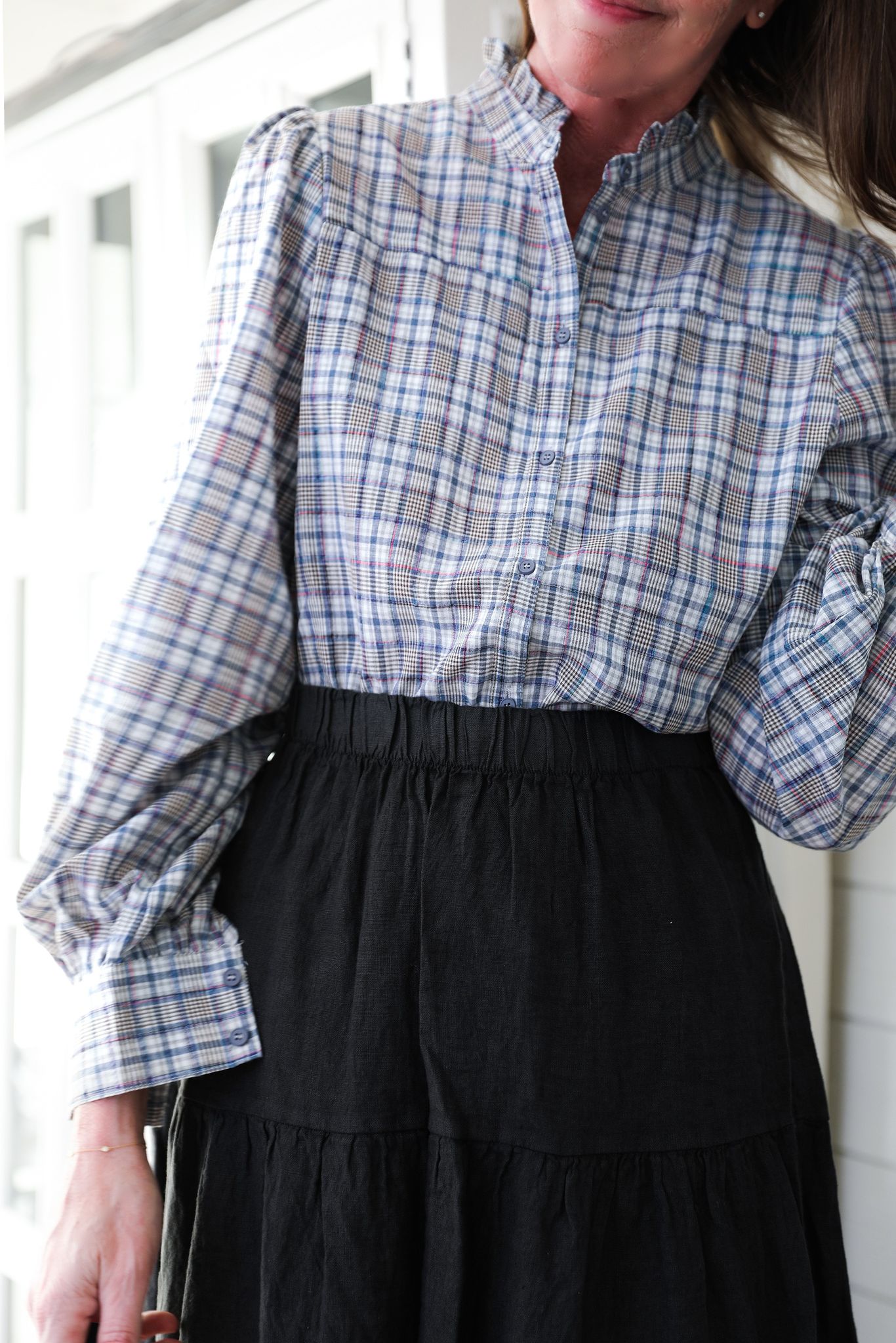 Mjuk och fin skjorta i lantlig stil. Helknäppt med krus runt kragen och manchetter med knäppning. Underbar tex. till jeans och till våra linnekjolar.