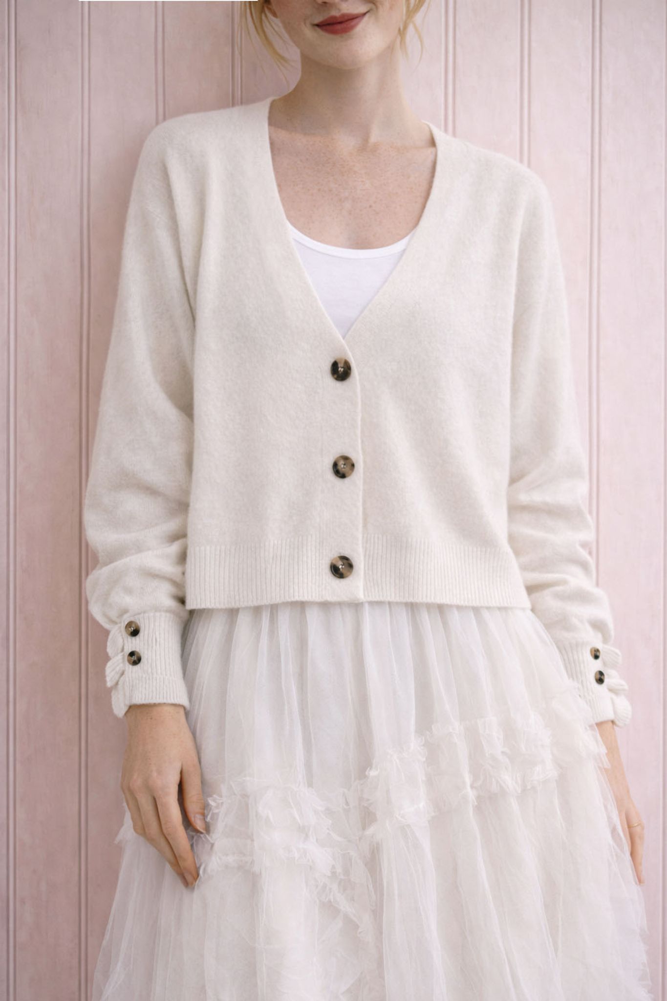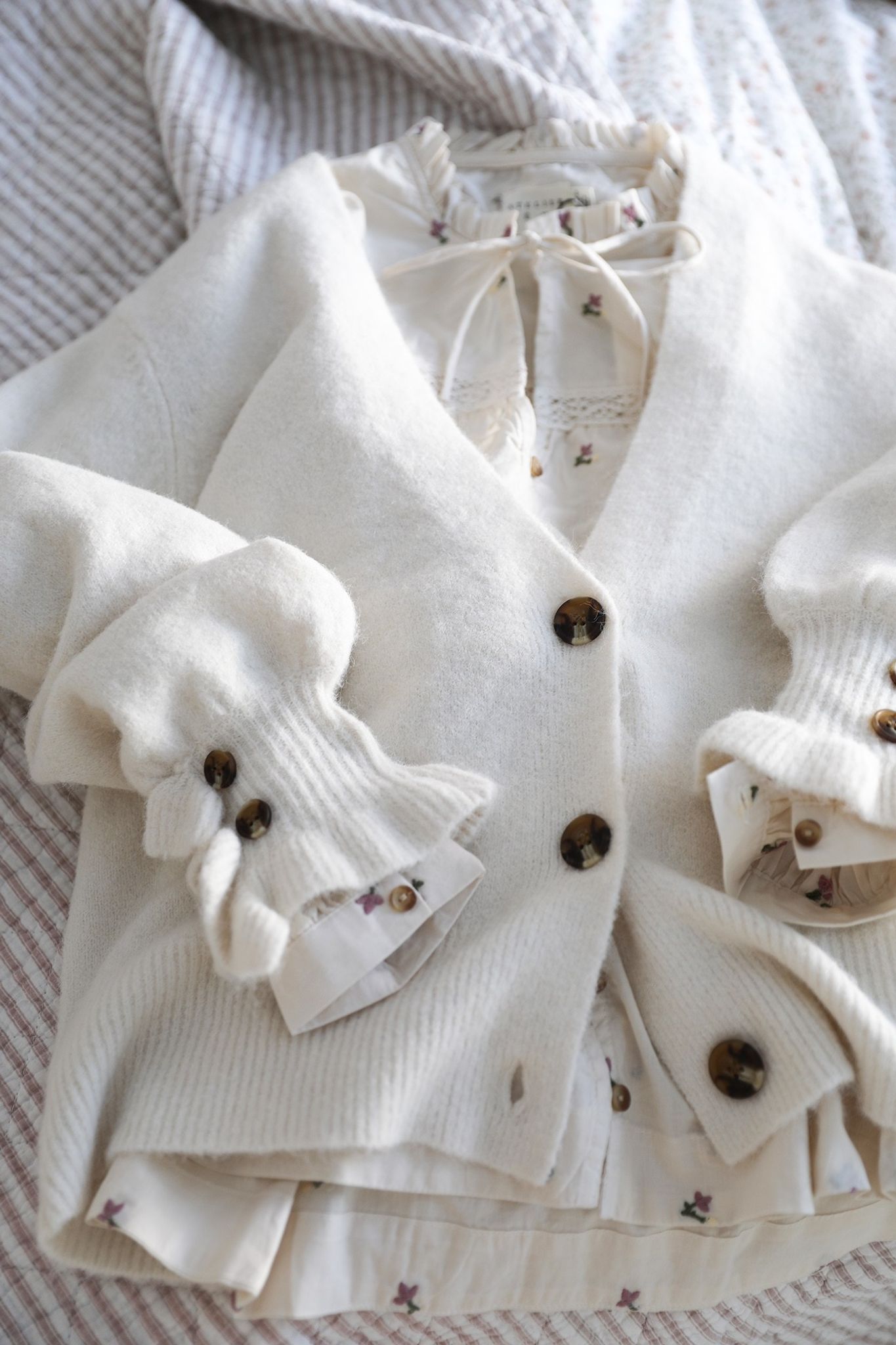 Romantisk, mjuk kofta i offwhite