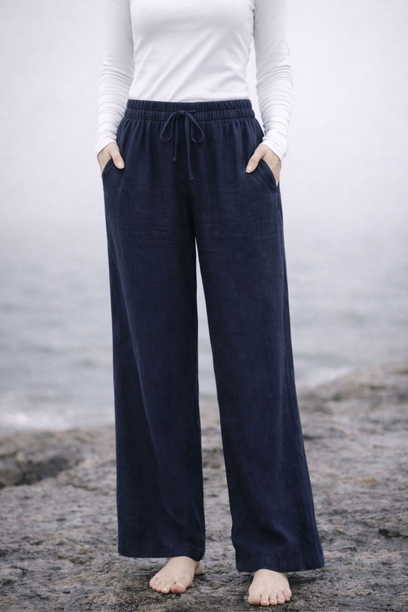 Mjuka mörkblå linnebyxor