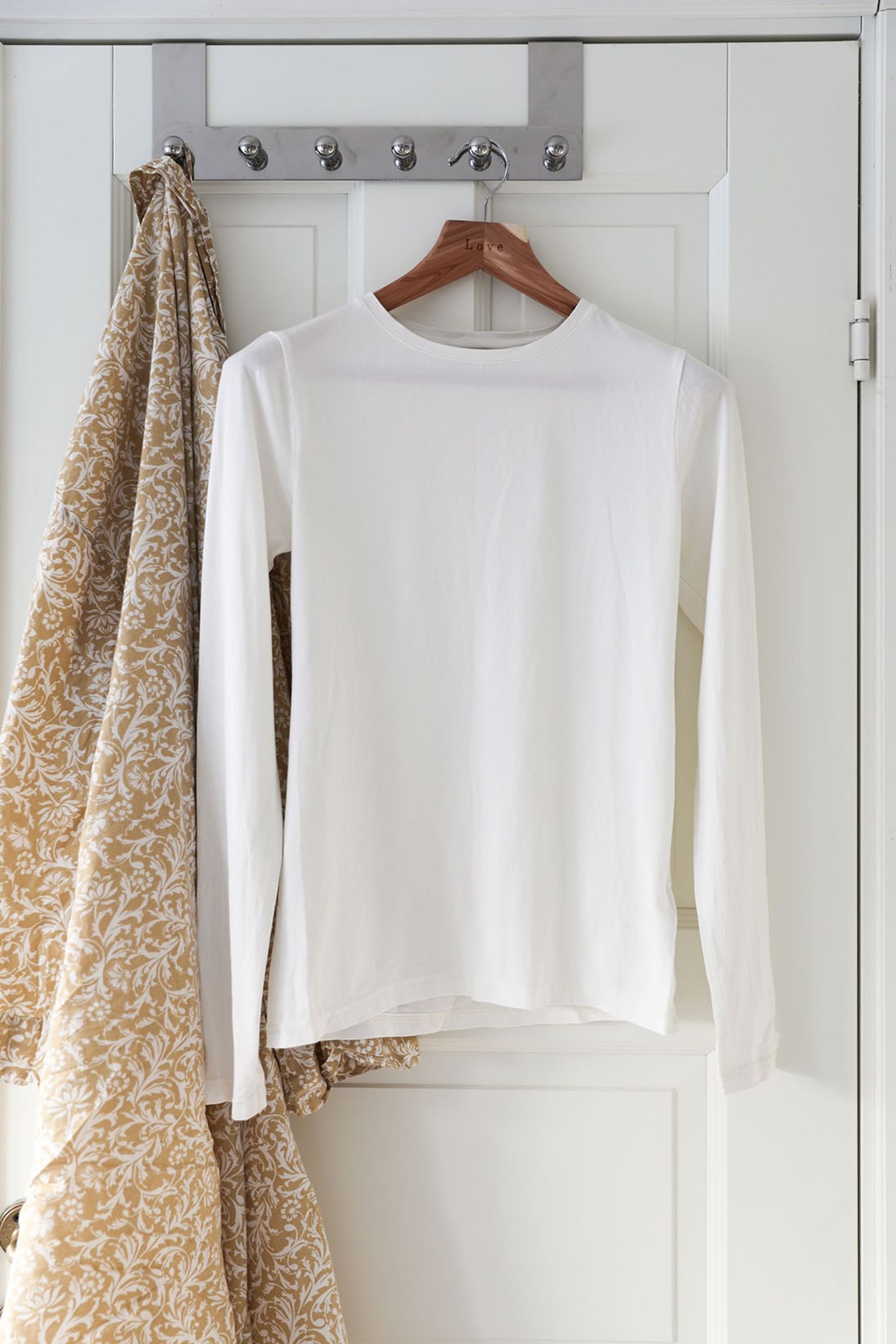 En offwhite långärmad baströja för dam i mjuk bomullsmodal med stretch och följsam passform. Ett användbart basplagg som fungerar lika fint för sig själv som under andra plagg.