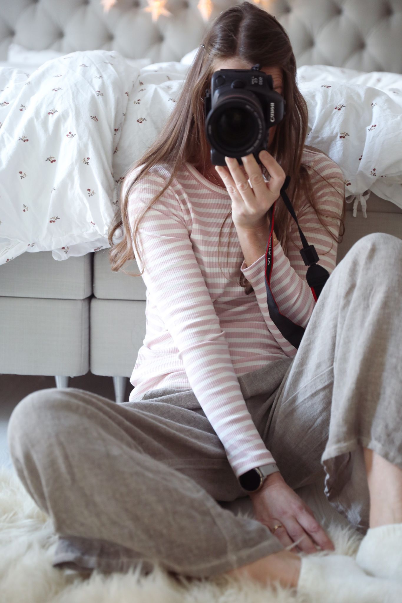Mjuk och skön, ribbad topp i offwhite och puderrosa. Mycket älsk på de mjuka pudriga färgerna i randen. Så fin till jeans, kjolar och linnebyxan på bilderna.