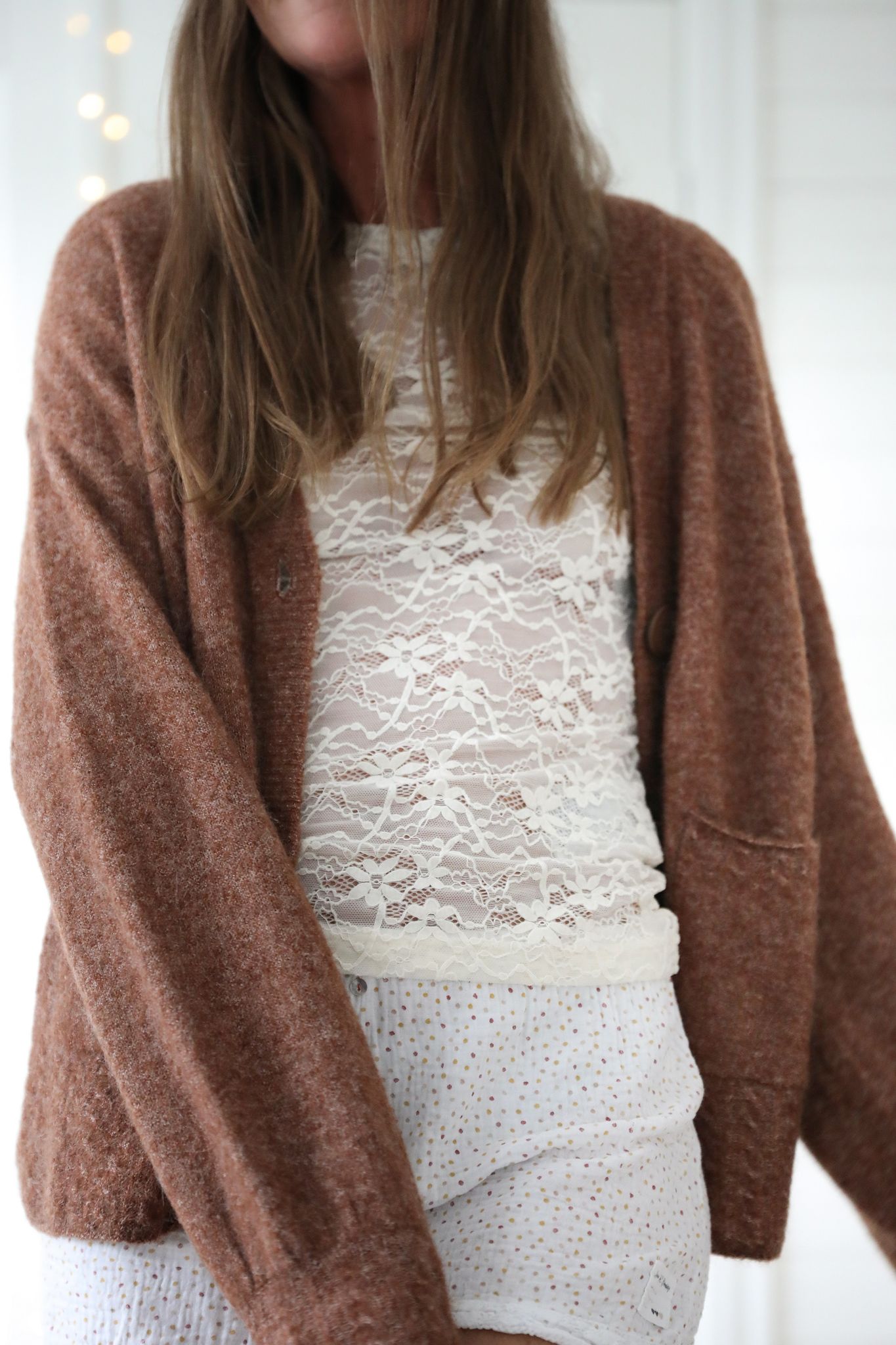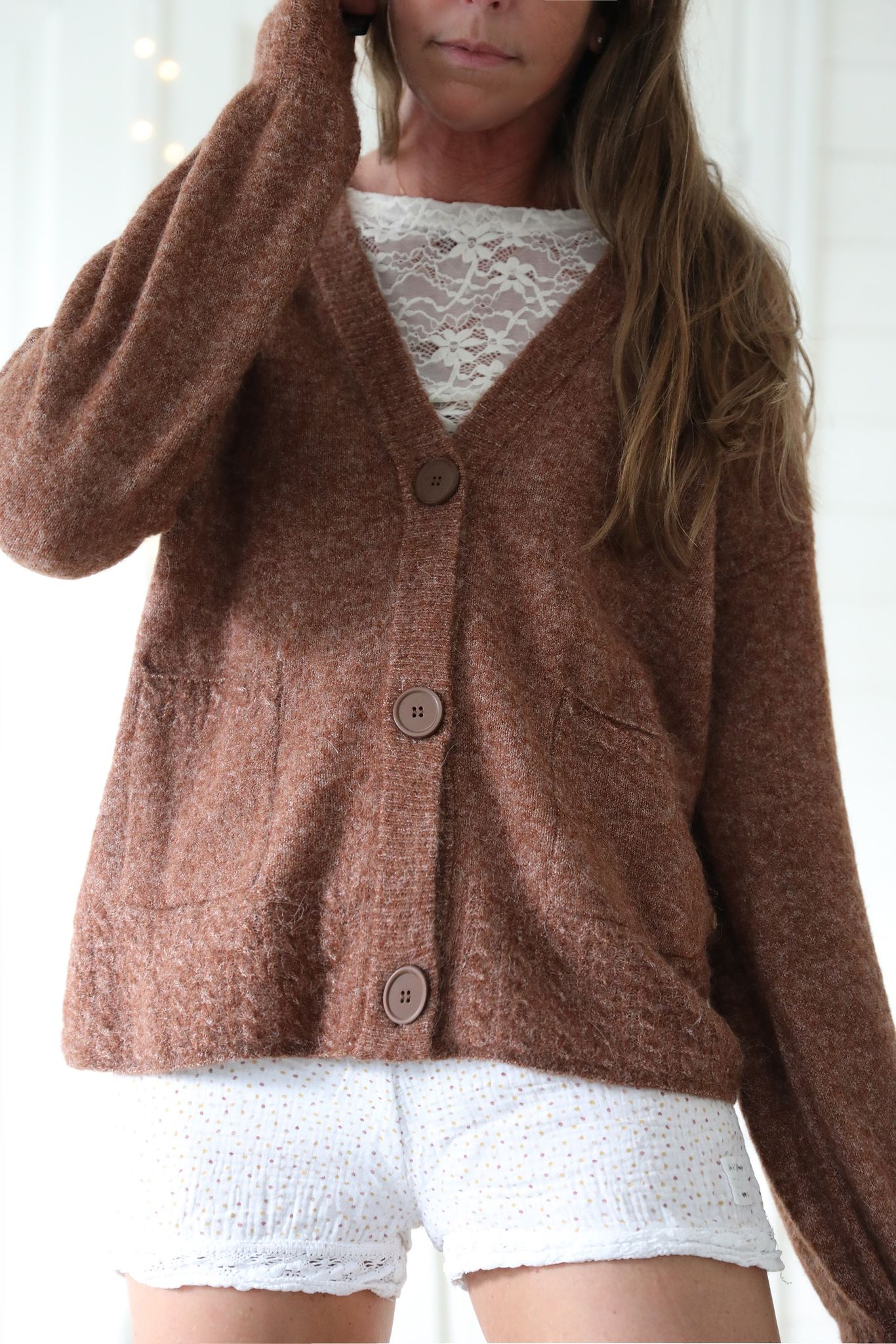 Romantisk brun kofta i ullblandning