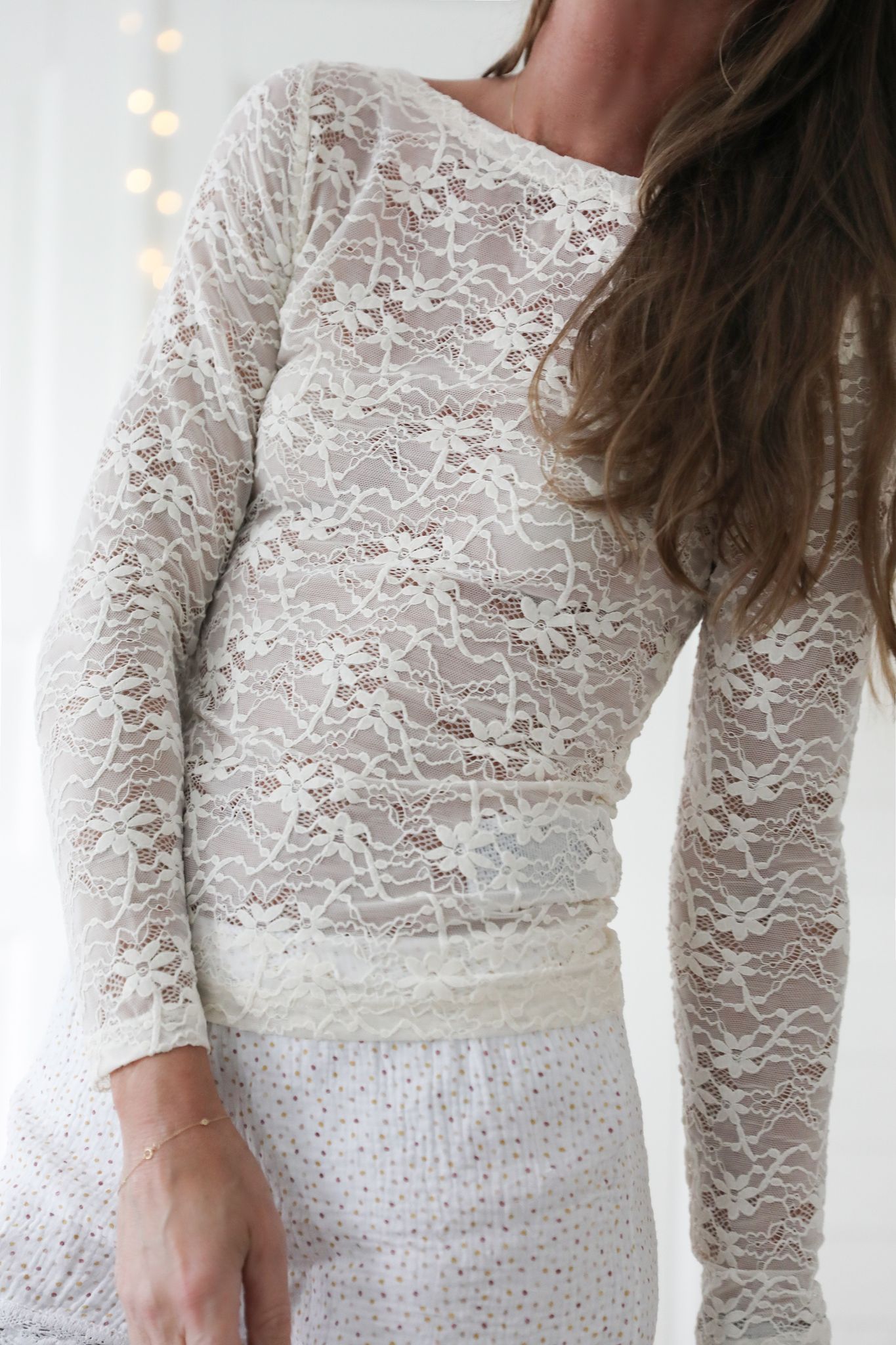 Romantisk cremevit spetstop