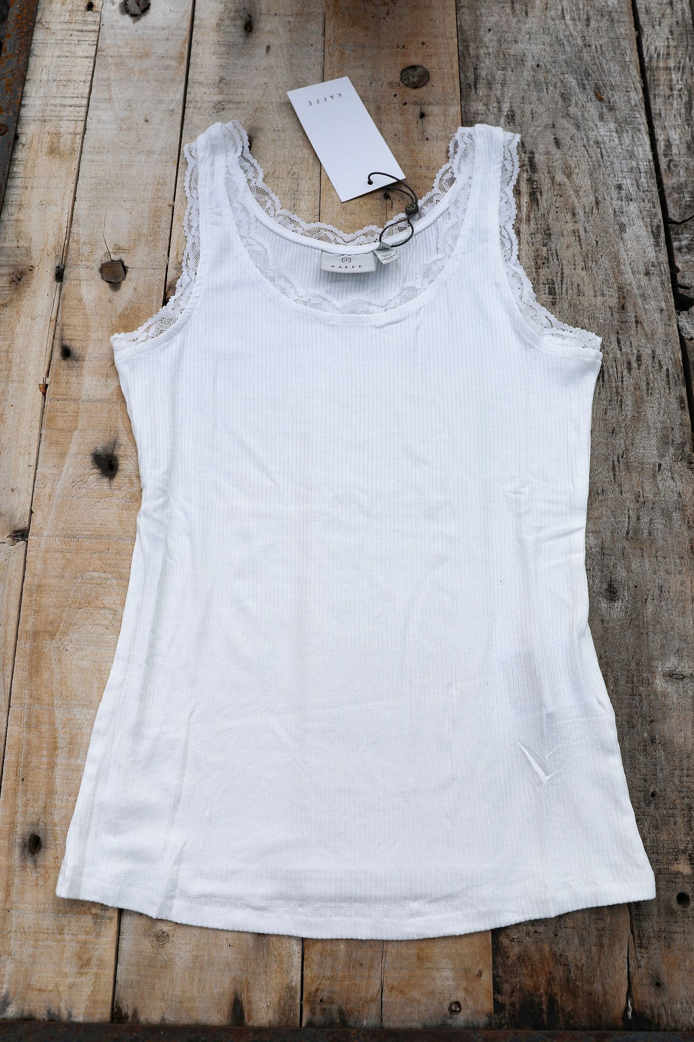 Gulligt och användbart ribbat linne med spetsar i halskant och ärmöppningar. Lent, silkigt och svalt mot huden, underbart att bära som underlinne när man är frusen och så fint under öppna skjortor och koftor