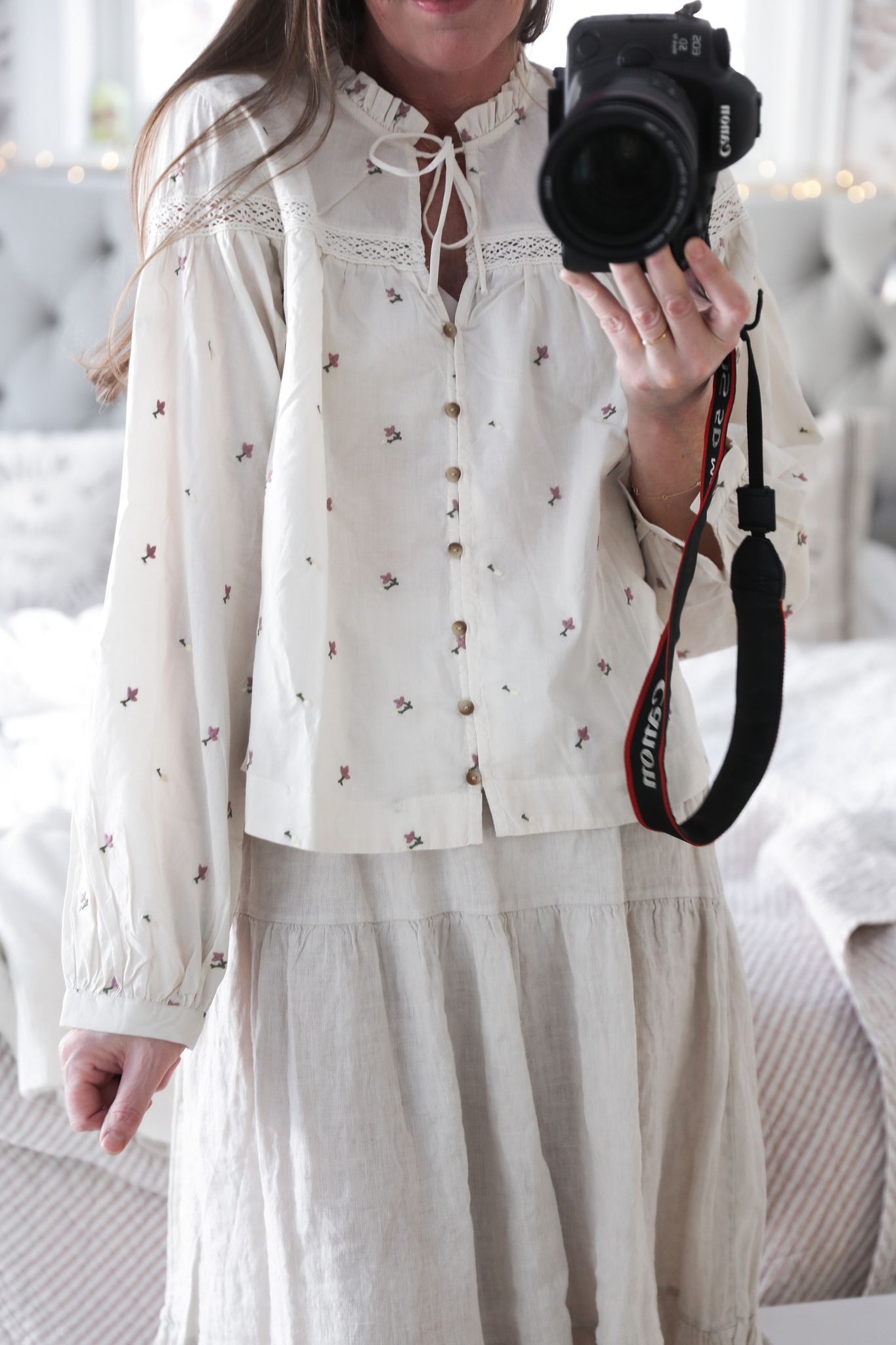 Skjortan kommer från Atelier R’eve, ett varumärke med känsla för romantiska detaljer och mjuka materialval.