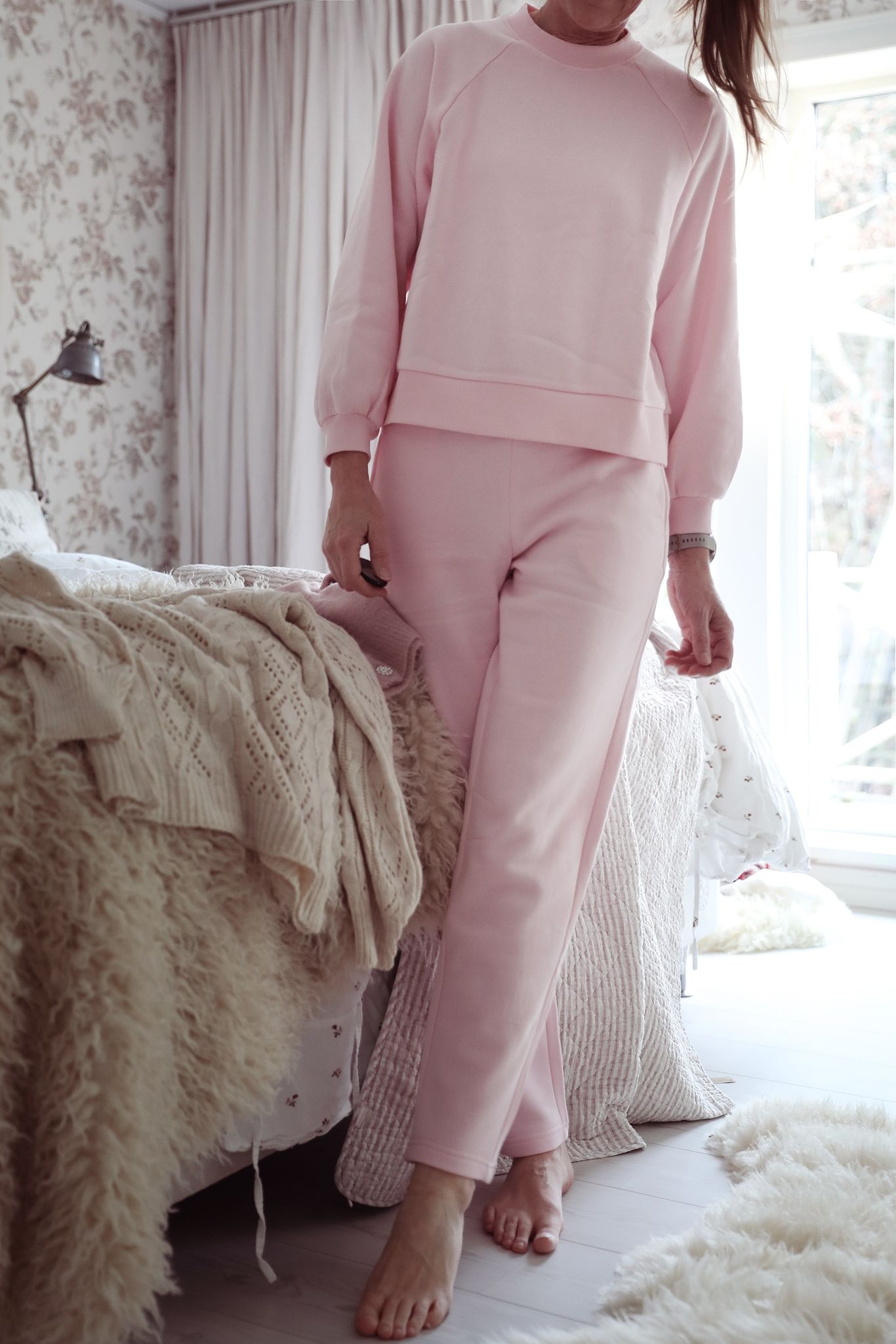 Mysigt, mjukt set med sweatshirt och joggingbyxa i mjukt joggingtyg med flossad insida. Perfekt julklapp till någon som gillar rosa och att mysa.