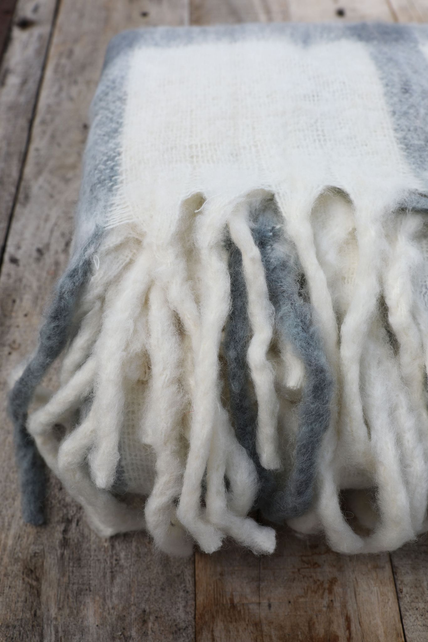 De ljusblå rutorna och de tvistade fransarna ger en fin, lite gammaldags, lantlig känsla.