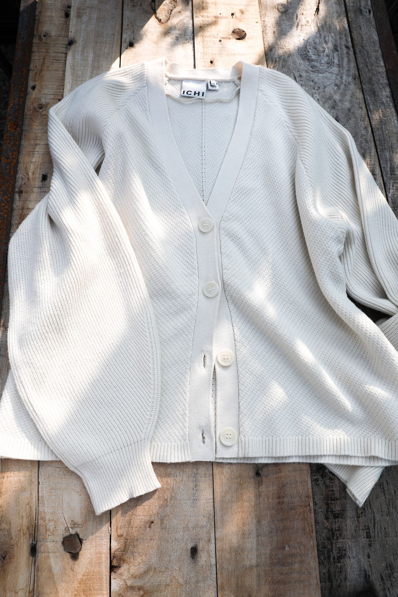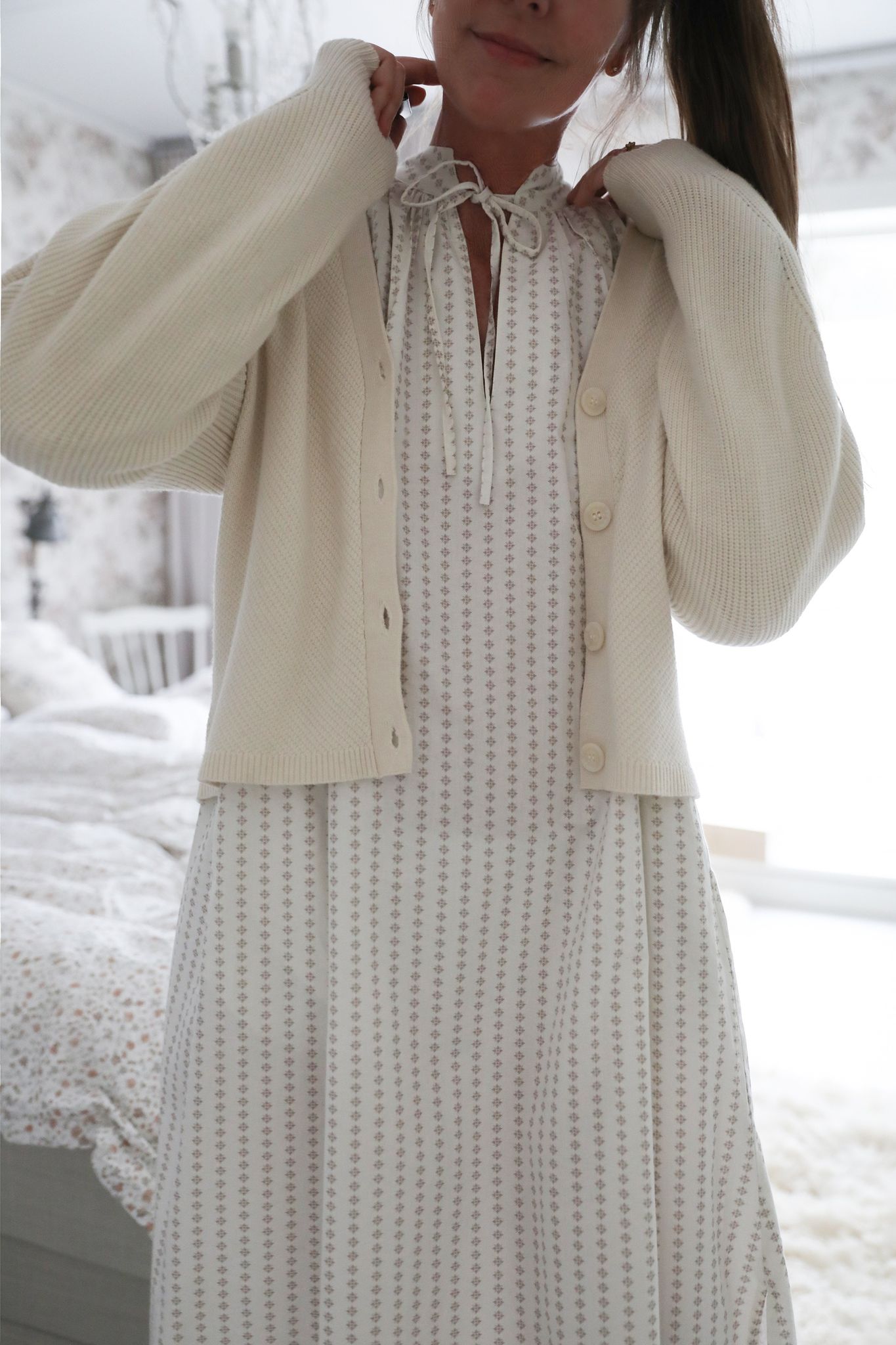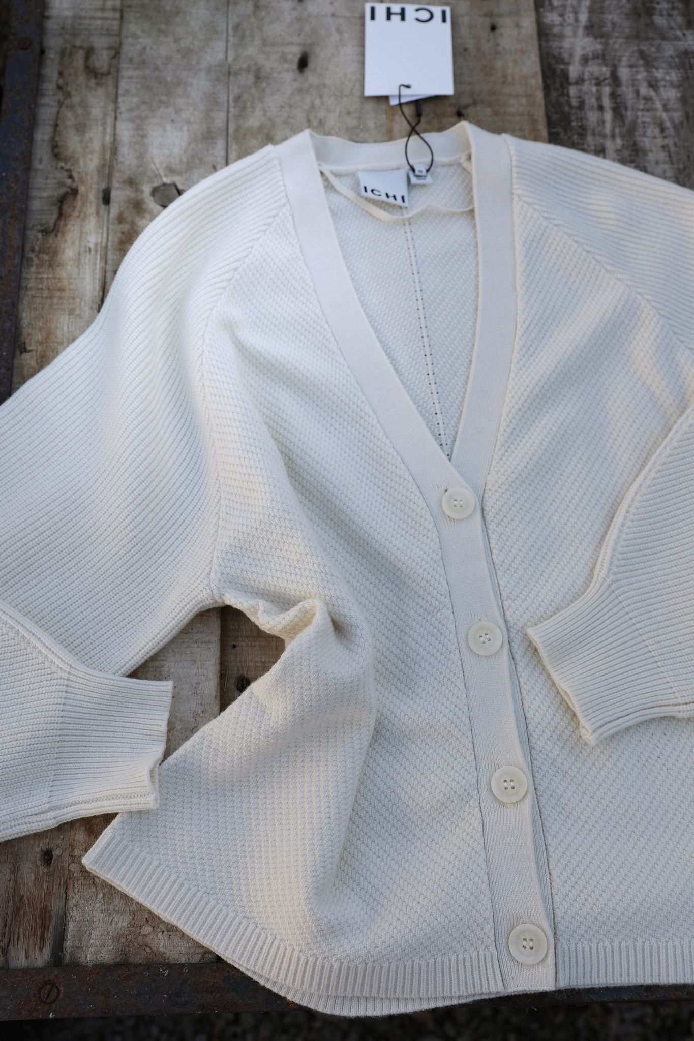 Söt stickad kofta med v-ringning cremevit