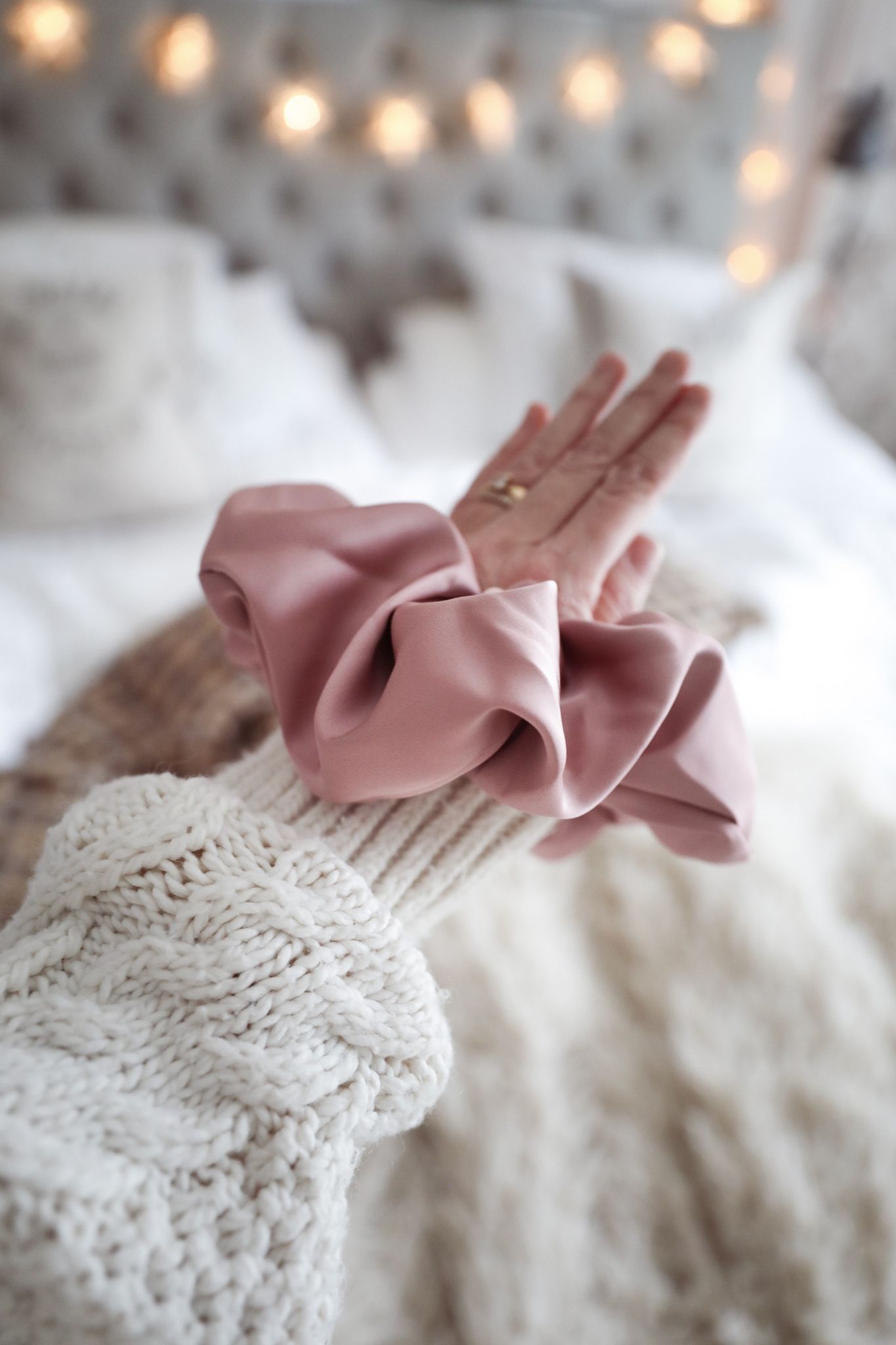 Stor scrunchie i rosa satin