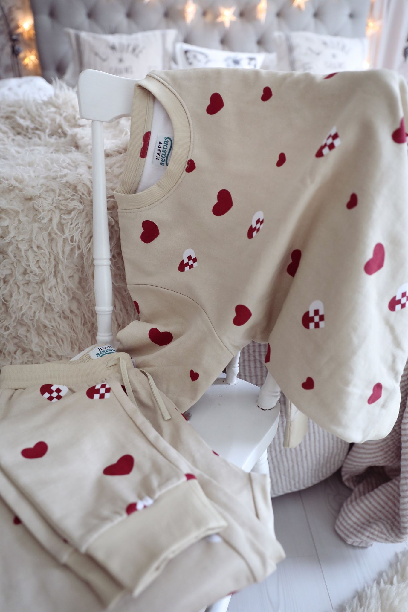 Helt underbart set i unisexmodell i tjock och gosig ekologisk bomull i jättefin kvalitet. Vem vill inte ha ett mjukis-set med julhjärtan på liksom och så kul att det finns till både henne och honom, så man kan matcha varandra <3