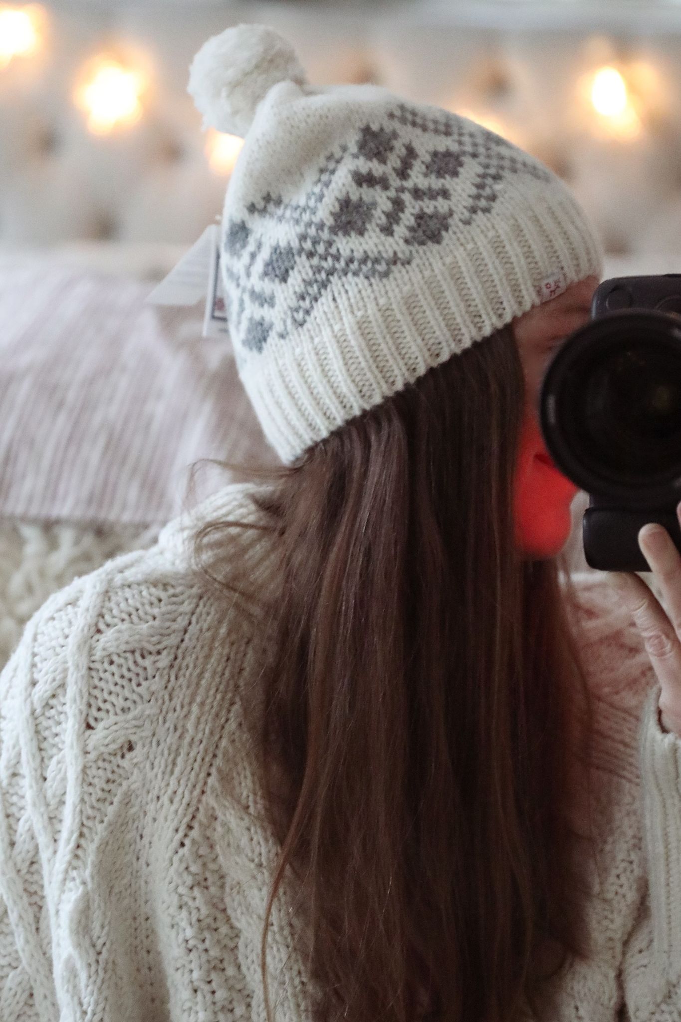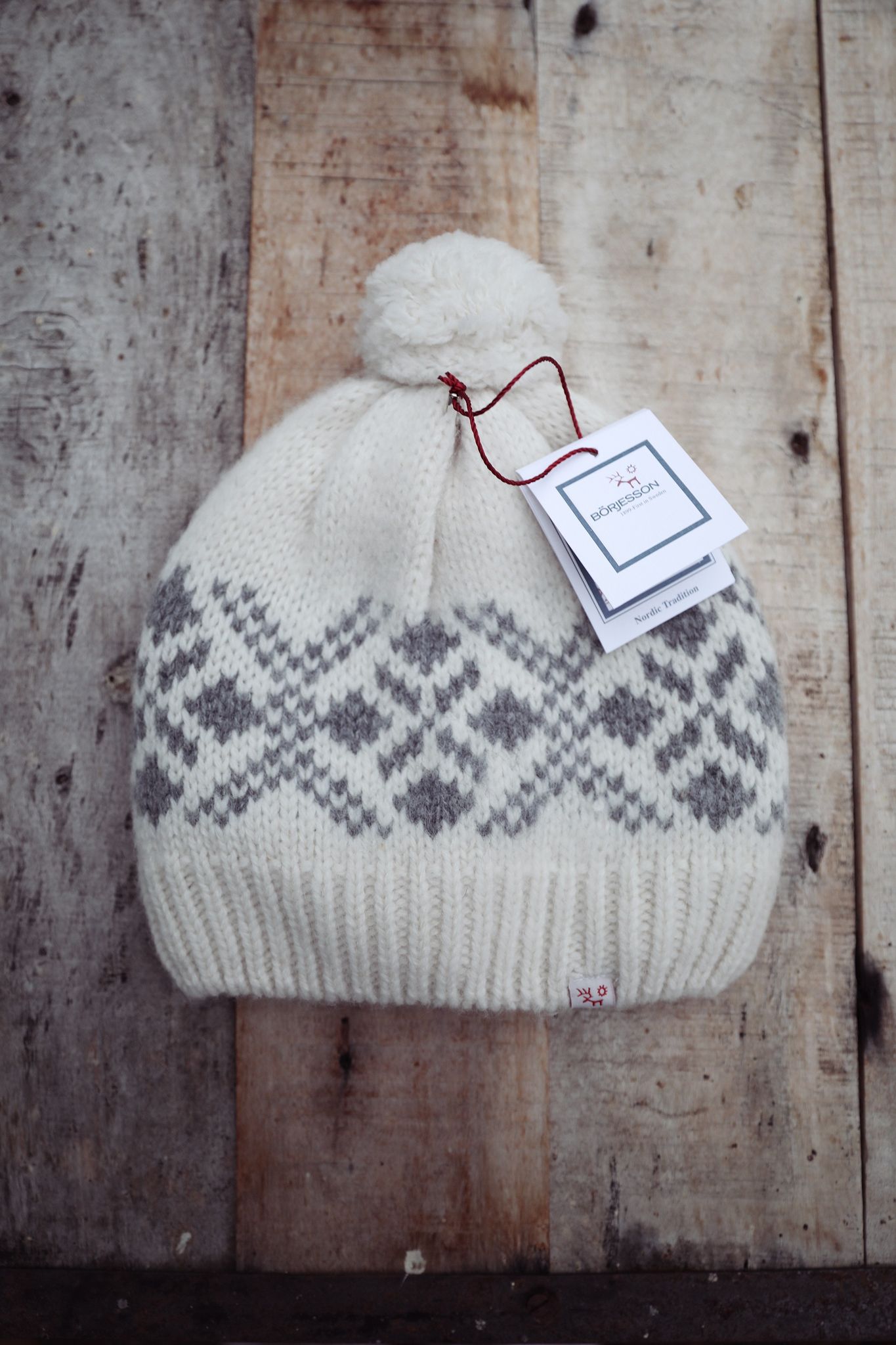 Varm mössa i shetlandsull med skandinaviskt mönster