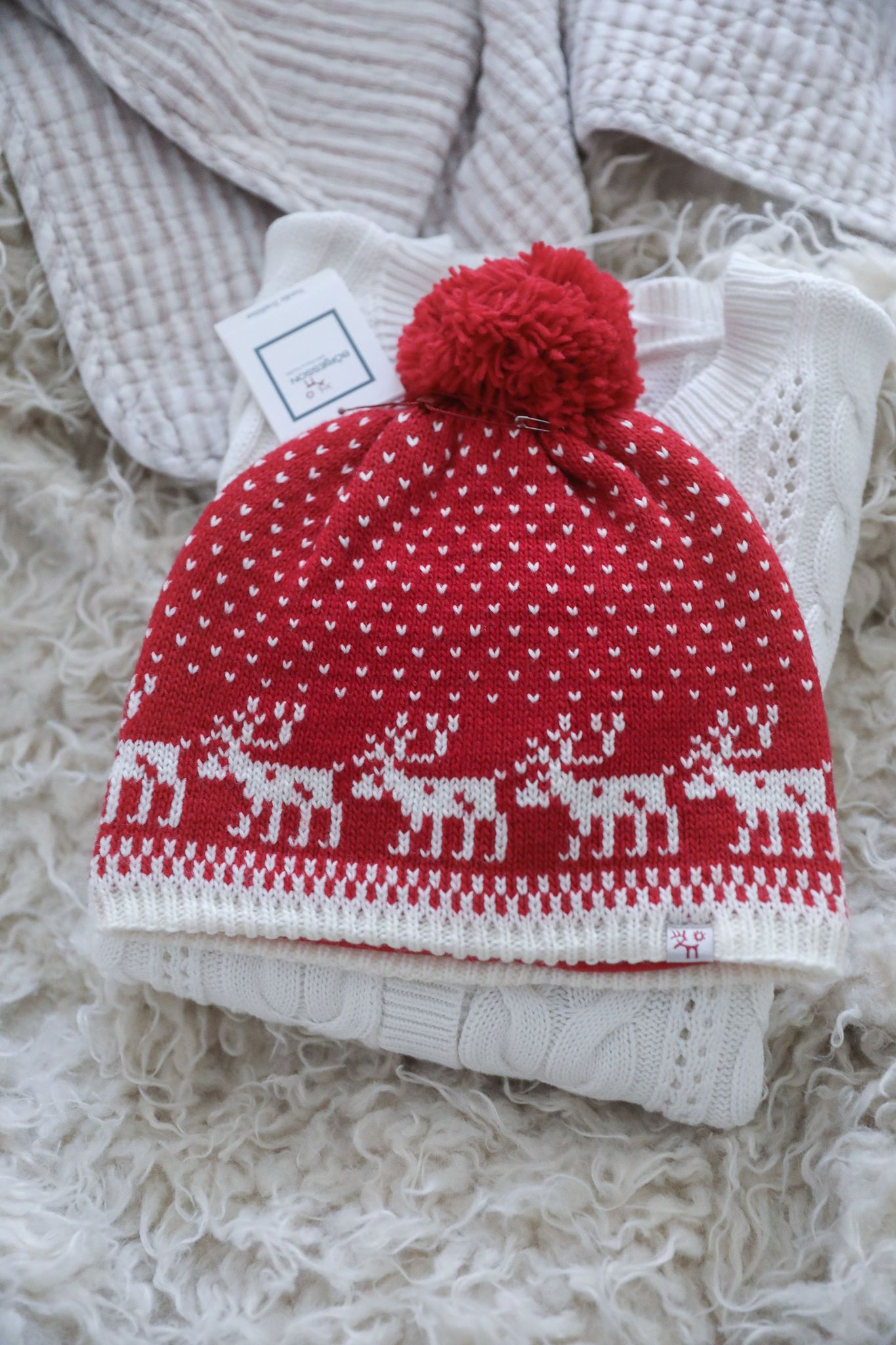 Sötaste ullmössan i skandinavisk stil med renar på. Fodrad med thinsulate. Varm, gosig och alldeles underbar. Finaste värmande julklappen.