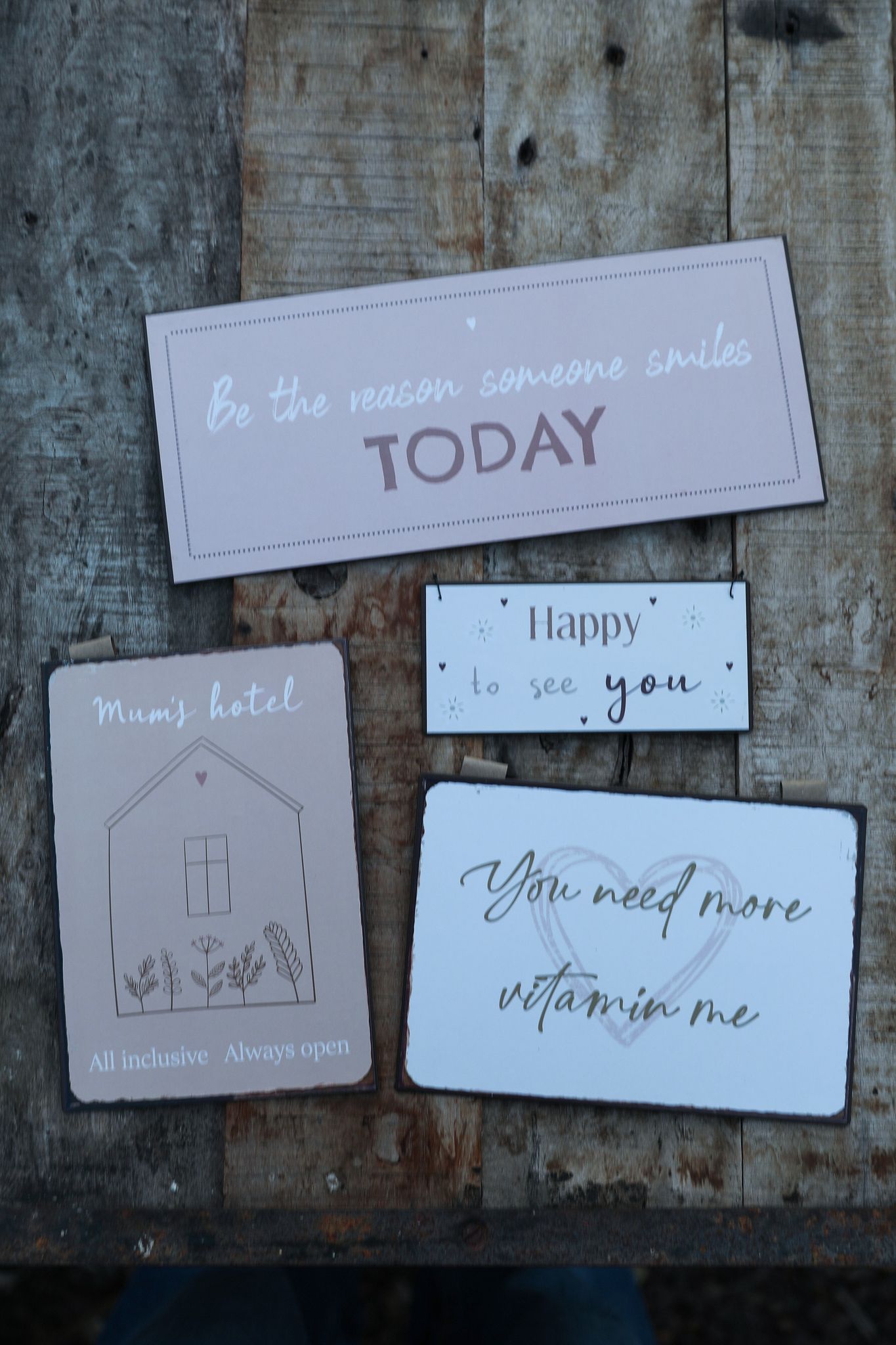 Lantliga och rustika metallskyltar med kärleksfulla budskap.