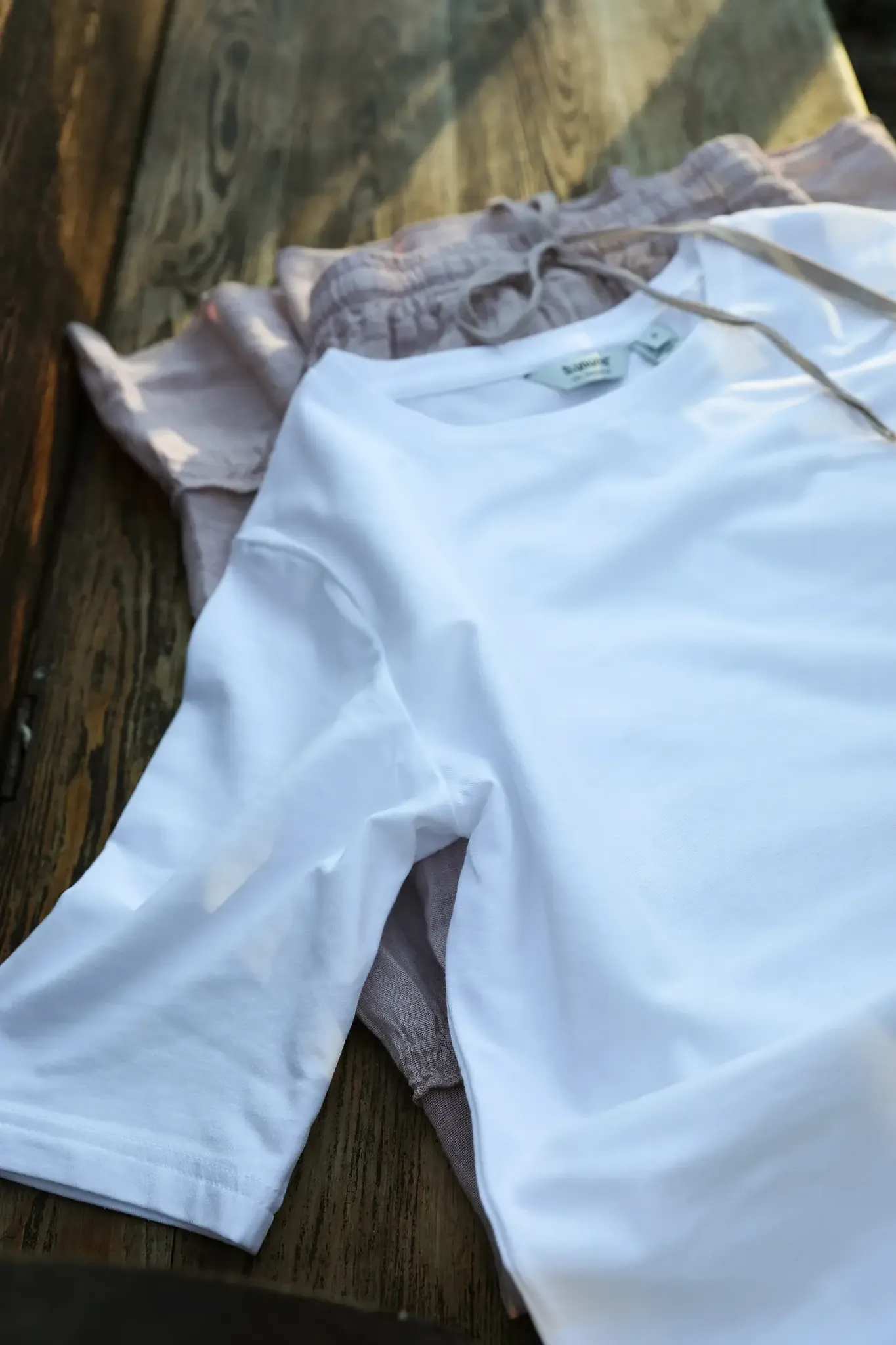 En mjuk och följsam vit topp i bomullsmodal som snabbt blir en självklar favorit i garderoben. Skön mot huden och enkel att bära både till vardag och lager på lager.